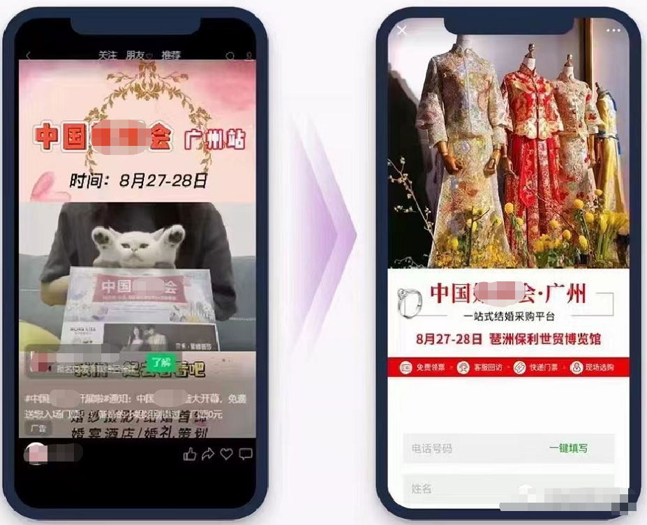 我们以某婚恋摄影行业的视频号原生竞价广告投放为案例,本期投放点击率高达1.5—1.7%,转化率达2.5—2.7%,表单成本对比朋友圈广告下降了20%。该案例的投放链路主要是以收集表单为主,转化效果相对之前的朋友圈投放效果显著,同时,拍摄实景给人真实热闹的场景,刺激网民互动参与,文案刺激可圈可点,利用免费领票的活动激活用户点击转化。