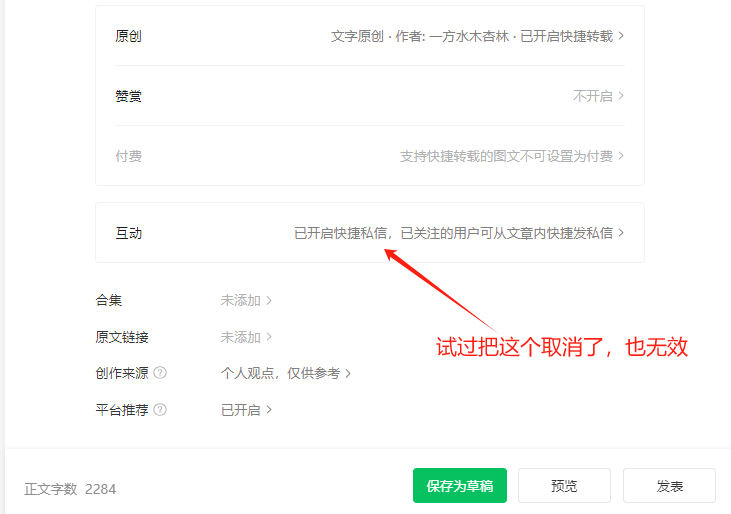 我发第二篇的时候用了这个方法成了!文是中午发的,留言是晚上给我开的,楼主你真的太棒了,爱你!!