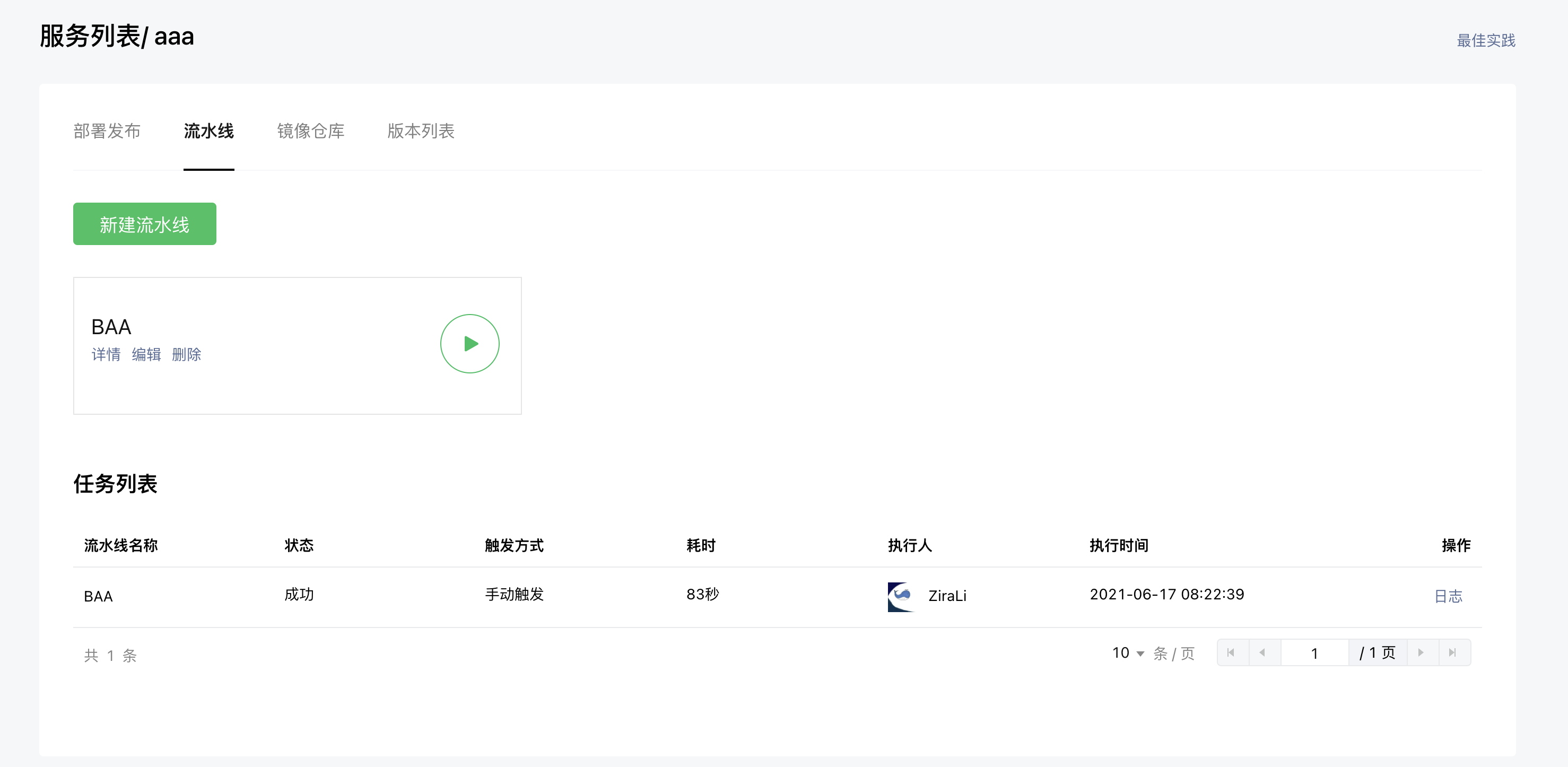 (15) 创建完成后,进入服务管理,如下图所示,选择新建流水线