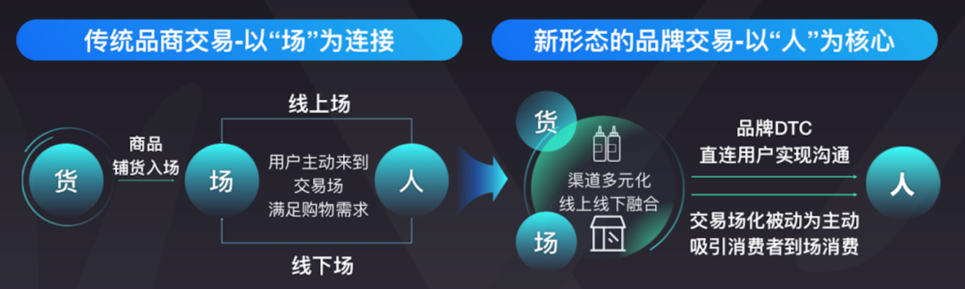 在过去渠道为王的时代,交易链条以“场”为核心,优质曝光点位的争夺战是这一时期的主要竞争方式,广告主无法与终端消费者进行直接的接触与沟通。