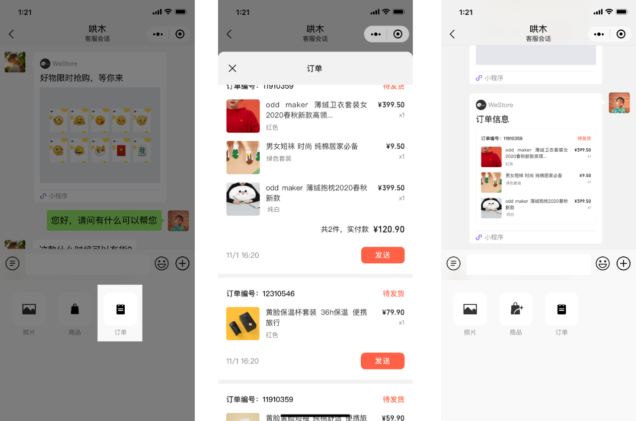 2.3 支持发送订单、商品,让交易沟通更便捷
