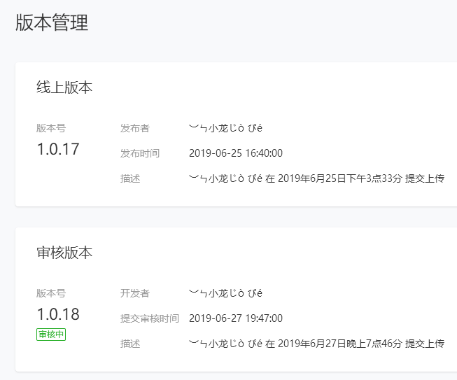 2019年6月27号前,小程序提交的审核几乎在2小时之内就被处理了 !感觉腾讯效率挺可以的 !!结果从27号开始 提交时 多出一个测试账号的东西(被要求必填)!!然后2天过去了…小程序依然处于审核中!不知道是不是出新规定了,然而搜遍腾讯都找不到公告!!