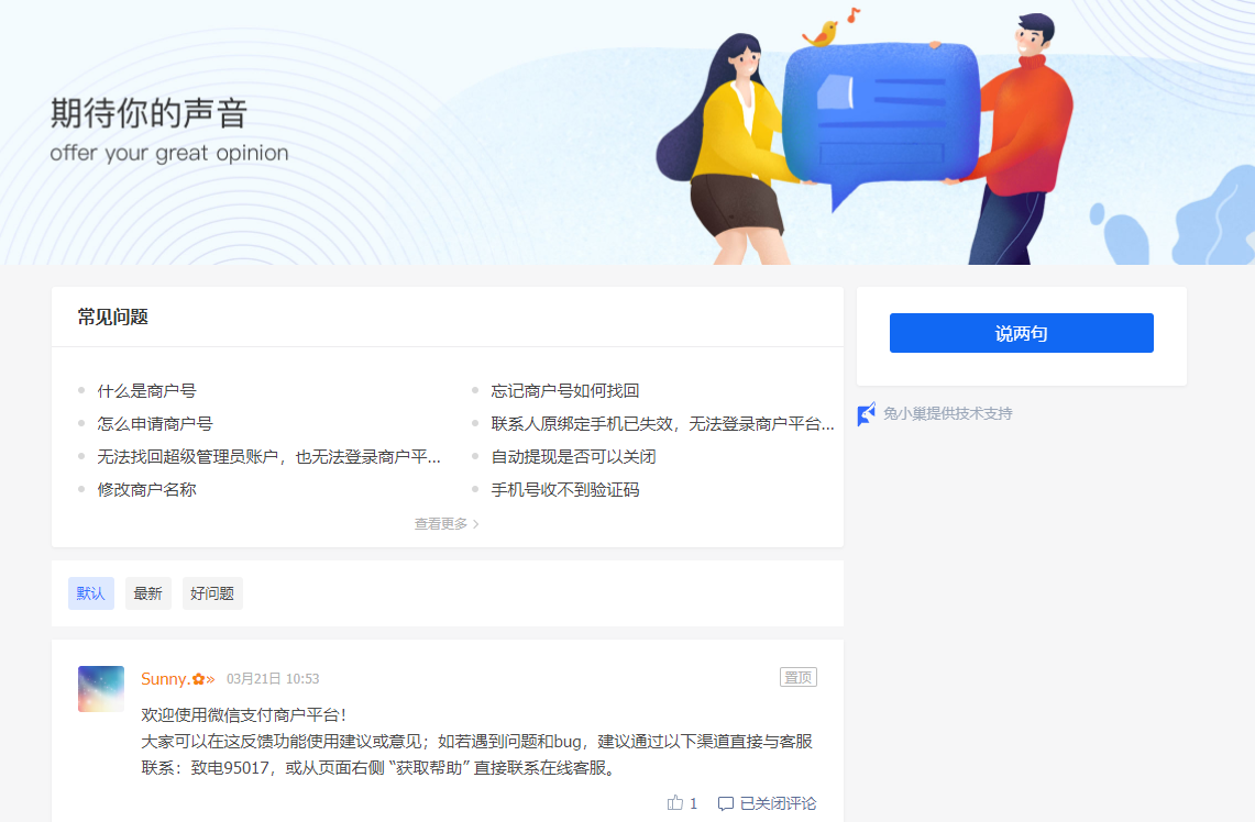 可以在此发帖询问问题,会有官方支付专员和热心网友解答。