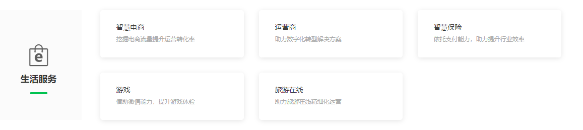 官方从生活服务、智慧零售、智慧餐饮、智慧出行、教育医疗、政务民生几个大方面(分别还包含具体行业),整理归纳了适合行业特点的运营、管理、营销方案。