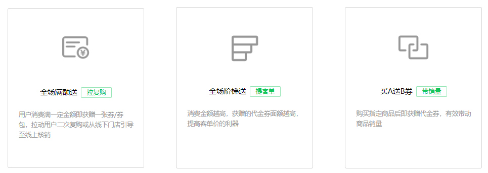 这是面向符合条件的微信支付商户开放的营销能力,通过发券拉动顾客二次购买促付费。