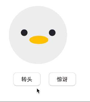 Lottie的不足之处是没有对应的API操纵动画层,若想做更细化的动画处理,只能直接操作节点来实现。比如当播放完左图动画进入惊讶状态后,若想实现右图随鼠标移动而控制动画层的简单效果: