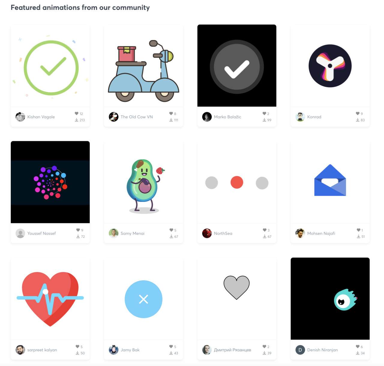 LottieFiles平台还提供了很多线上公开的Lottie动画效果,可直接下载JSON文件使用