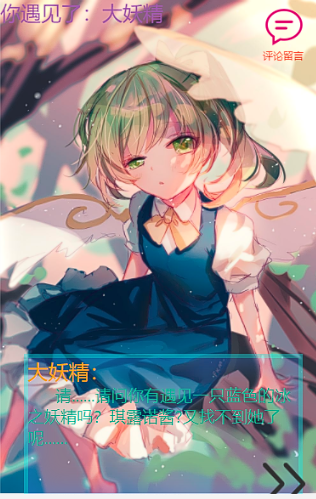 <view id="talkbox1" style="position:fixed;z-index:999;color:#ff7675;font-size:1.5rem">你遇见了:雾雨魔理沙</view>