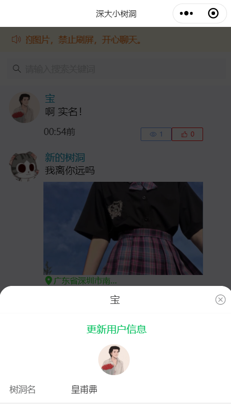 -用户设置页(更新用户信息、修改树洞名)