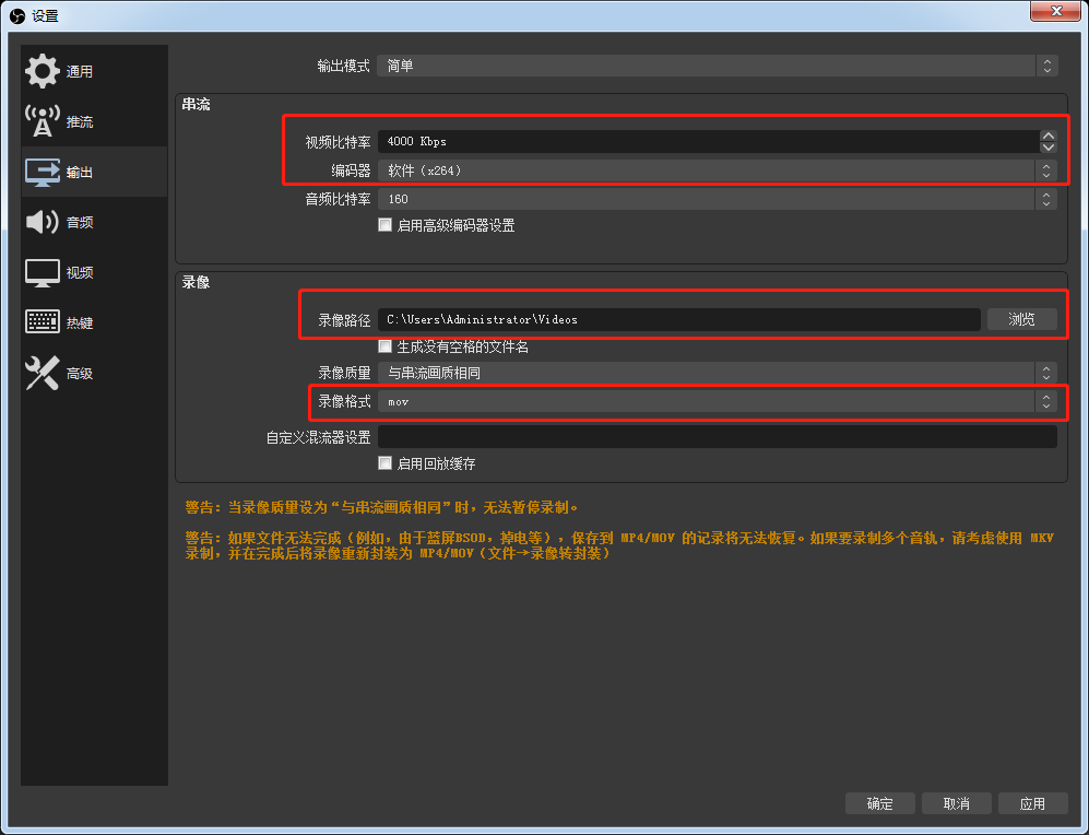 问题二:把obs上的输出的比特率调整一下,先用4400,看情况再去提升