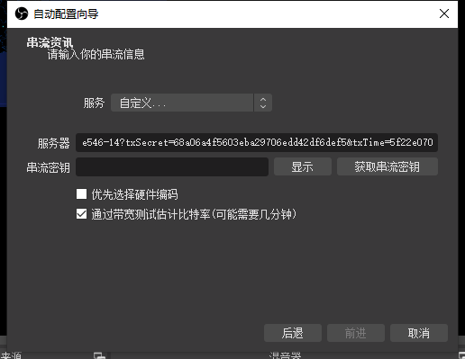 - 流类型:自定义流媒体服务器(自定义,顾名思义,可以自己设定串流)