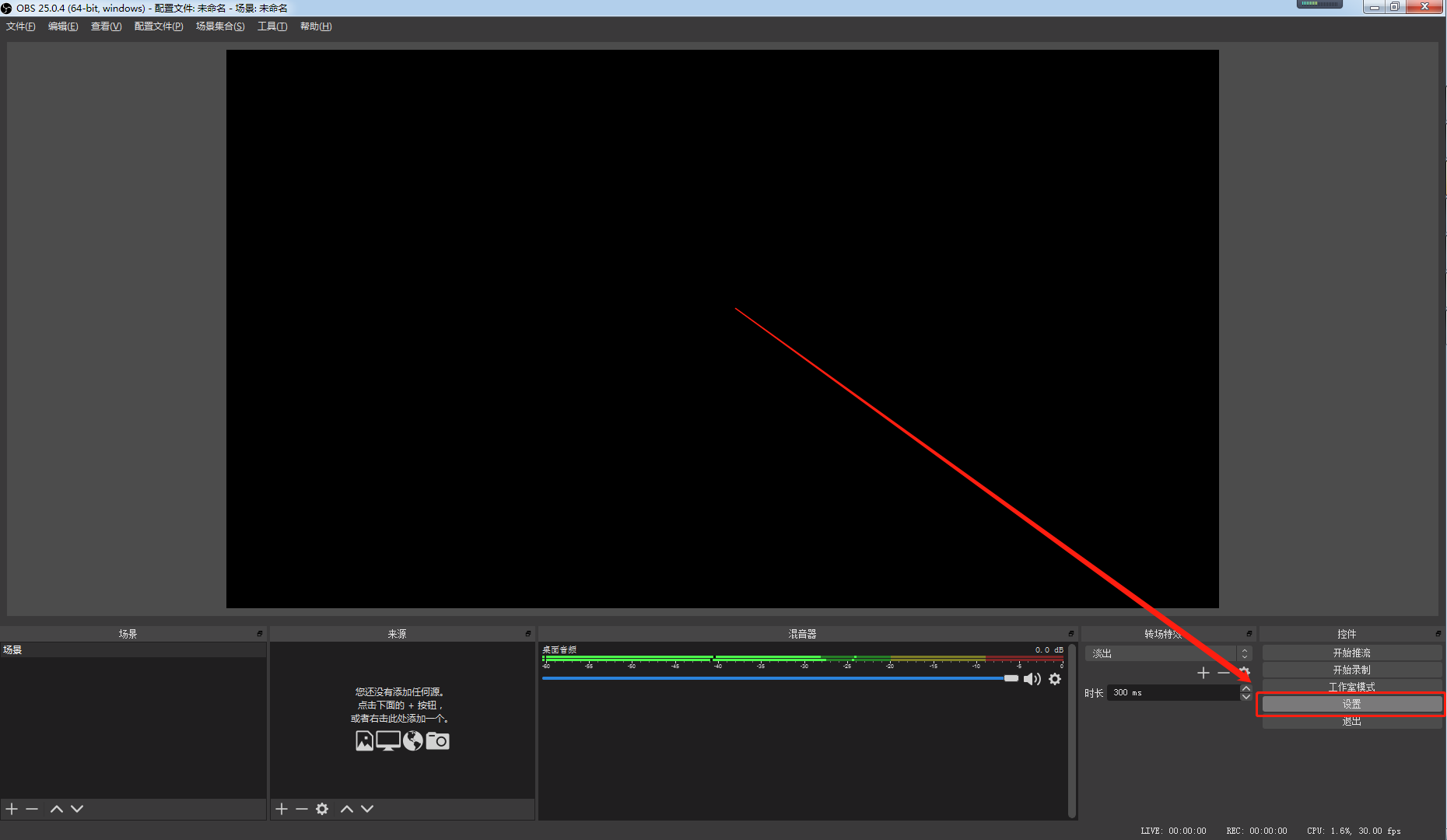 B:设置里包括:通用、推流、输出、音频、视频、热键、高级