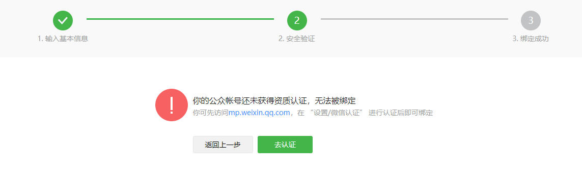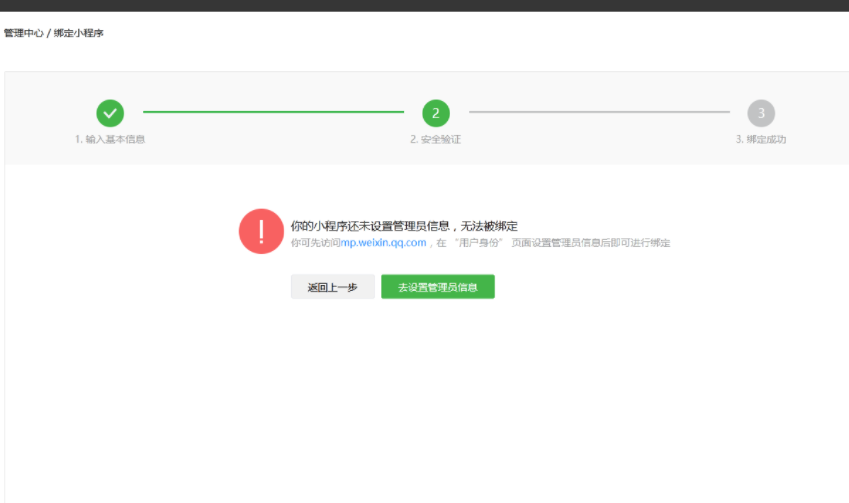 你可先访问mp.weixin.qq.com,在 “用户身份” 页面设置管理员信息后即可进行绑定