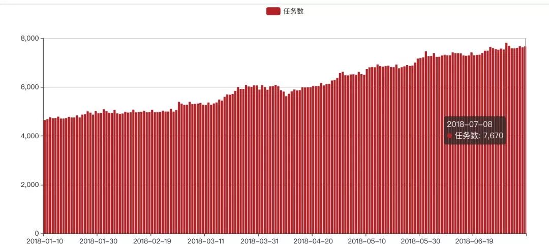 DP项目从2017年1月开始立项开发,6月份正式投入生产,之后经过了N轮功能迭代,在易用性和稳定性方面有了显著提升,目前调度集群包括2台Master和13台 Slave(调度)节点(其中2台用于 Scheduler ,另外11台用于 Worker ),每天支持7k+的任务调度,满足数据仓库、数据中心、BI、商品、支付等多个产品线的应用。