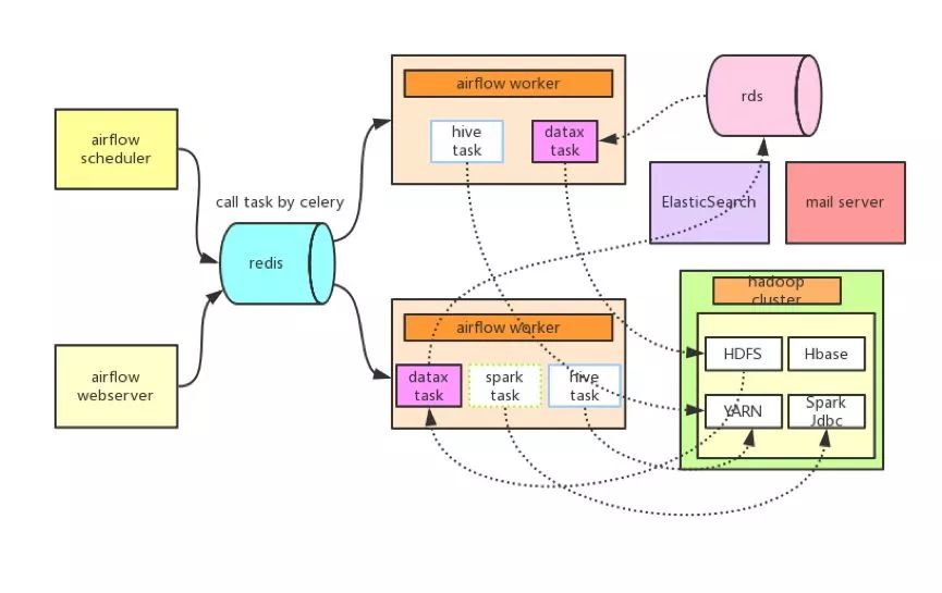 针对问题1,在 Airflow 原始的任务类型基础上,DP 定制了多种任务(实现 Operator ),包括基于 Datax 的导入导出任务、基于 Binlog 的 Datay 任务、Hive 导出 Email 任务、 Hive 导出 ElasticSearch 任务等等。