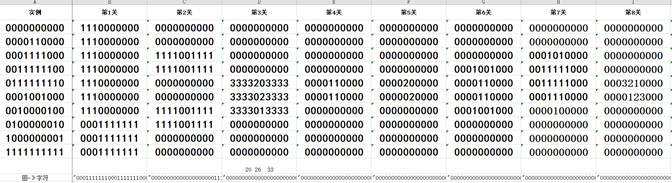 这里分享一个地图编辑最简单的EXCEL应用,以前做的俄罗斯方块、推箱子、坦克大战的地图都是用EXCEL直接编辑,生成字符串。用小游戏工具做1010消消乐关卡也不例外,生成了每张地图的字符串,再用excel的行转列复制出来,直接导入小工具的列表中,批量做关卡,简单方便,省去了开发个小工具的时间。500关卡就是EXCEL的500列,不含地图的创意时间,几个小时就完工了。