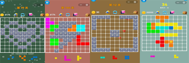 不同方块的组合,形成俄罗斯方块、异型方块各种模式,产生不同的难度变化。