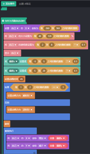 利用一个精灵,切换雪花、树叶、气泡等图片,产生飞雪、落叶效果。