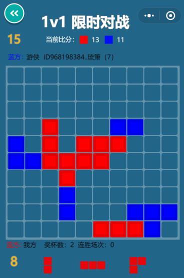 利用电脑算法,模拟联机对手,采用几种算法难度,达到匹配对手的等级随连胜次数的增加而增加的效果。