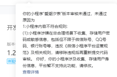 在做微信小程序有涉及表单提交,涉及用户信息收集时。提交代码会审核不过。