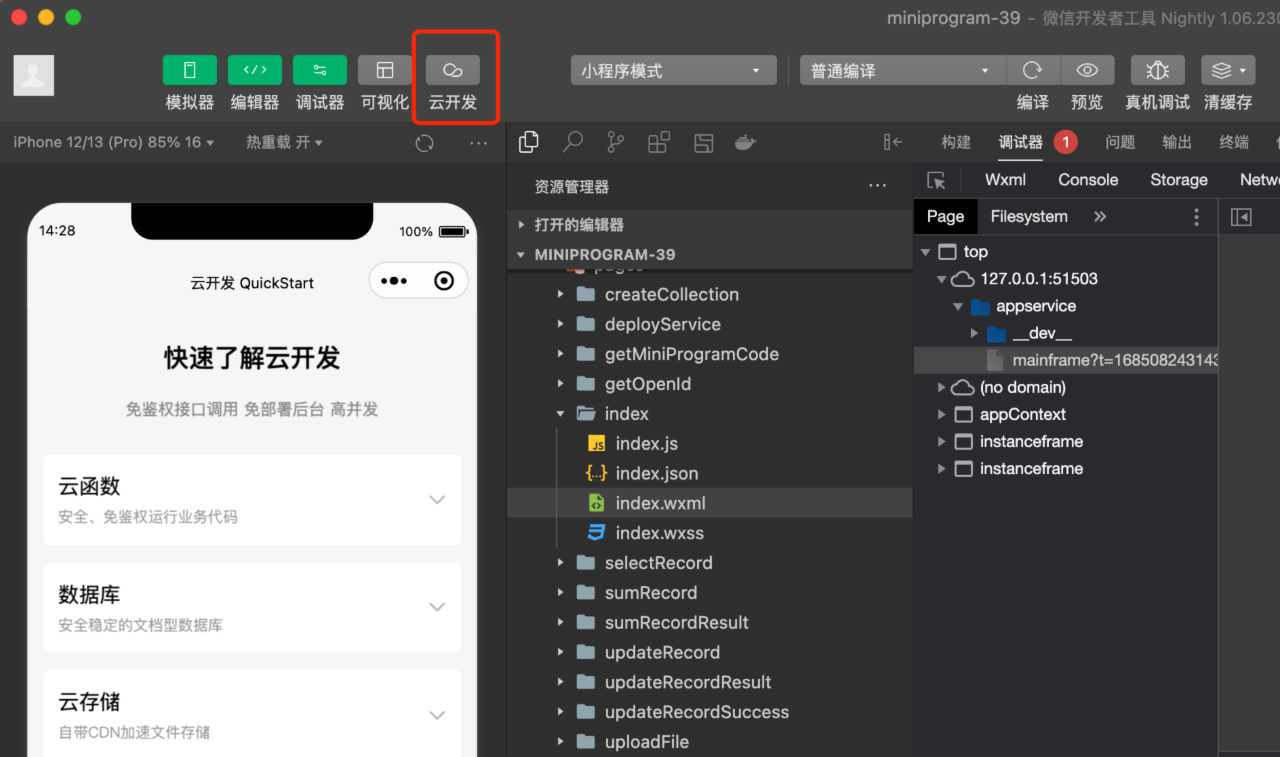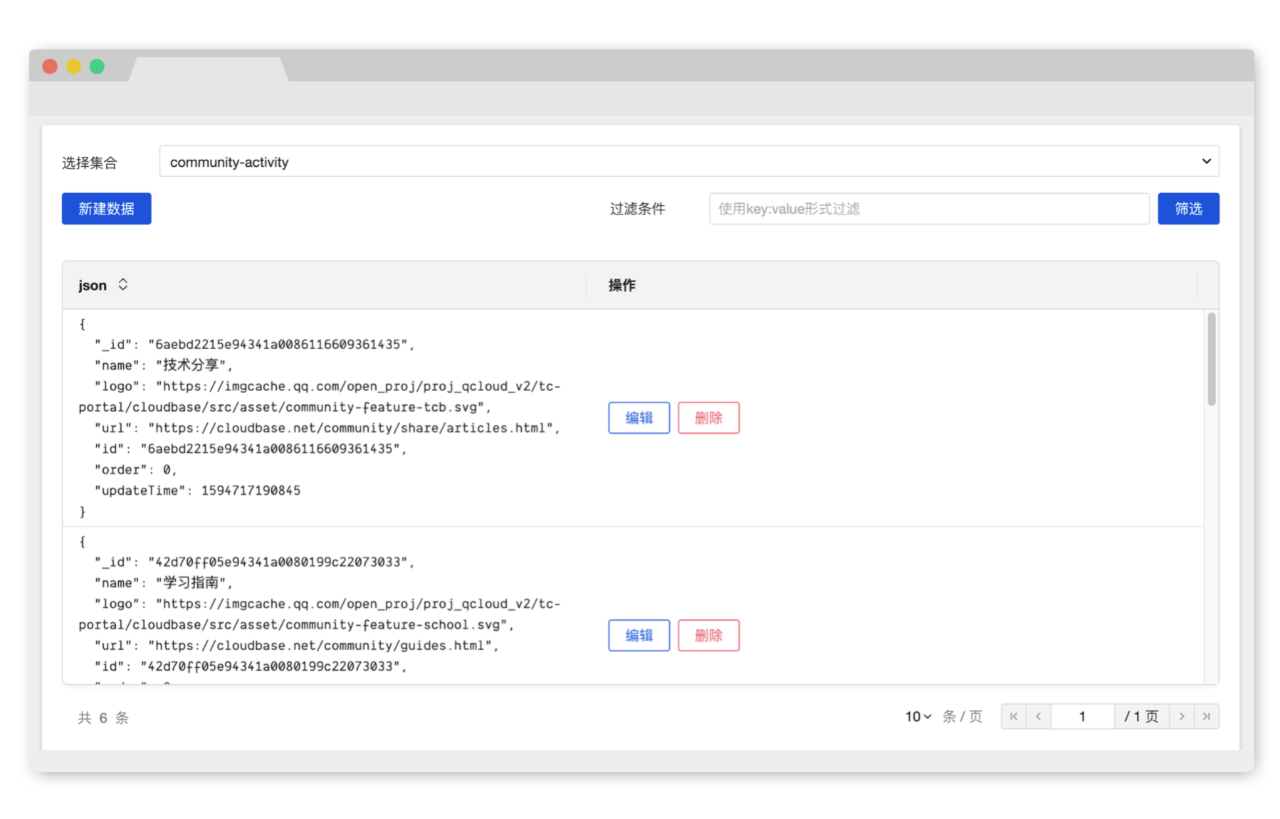 - 能力一:云数据库管理,用于管理云开发的数据库,支持数据的可视化增删改查操作