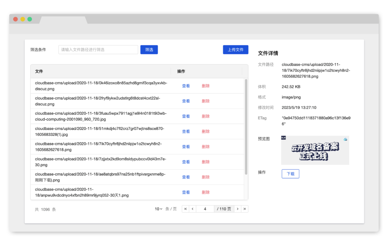 - 能力二:云存储管理,用于管理云开发的云存储文件,支持可视化筛选、上传、下载等操作