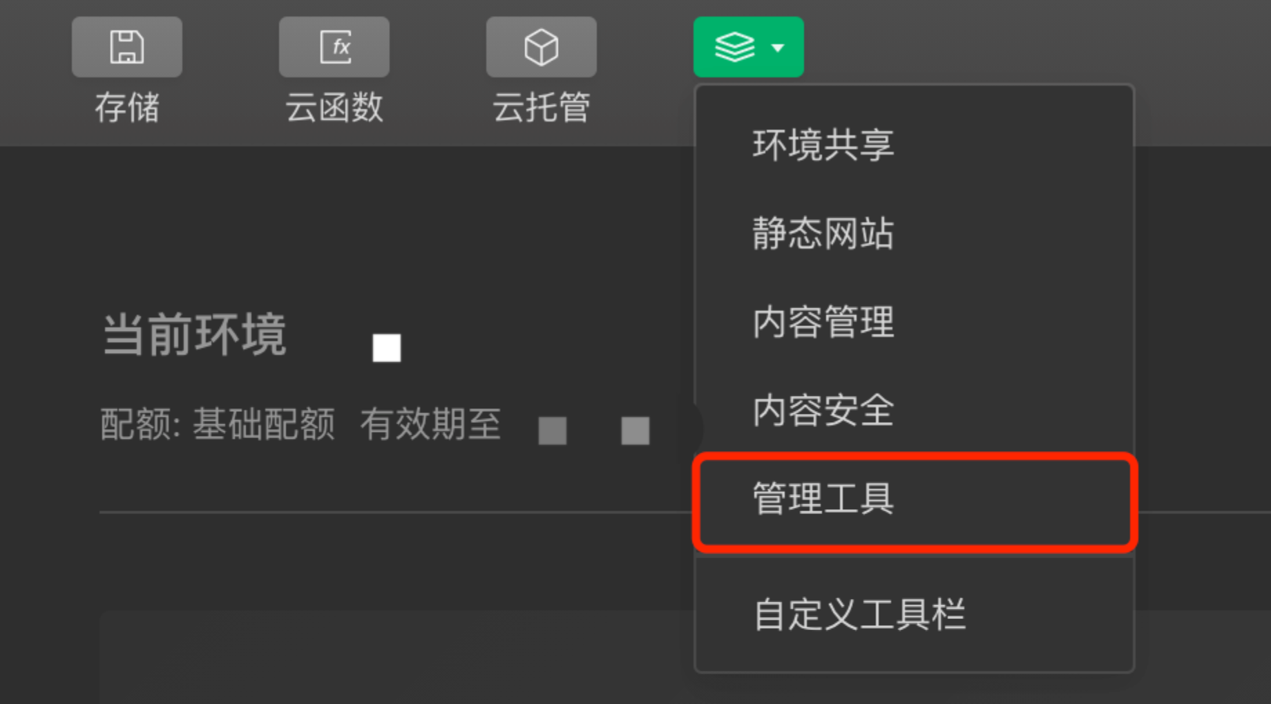 前往微信开发者工具中的云开发控制台,打开「管理工具」