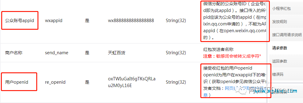 打开微信支付官方文档中的小程序红包,公众号appid和用户openid参数描述模糊不清,说得就是微信公众号的appid和用户openid,压根没有提到小程序。