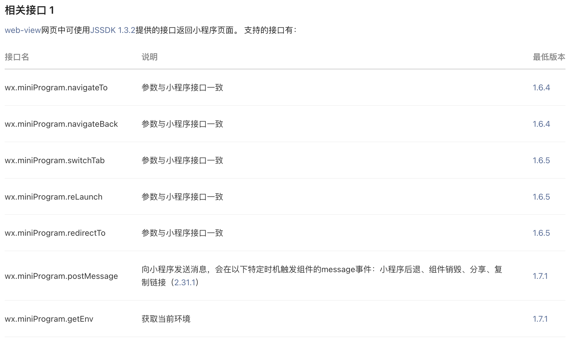 2、小程序内嵌的h5,如果需要调用小程序的一些功能,h5里面需要加载JSSDK 1.3.2