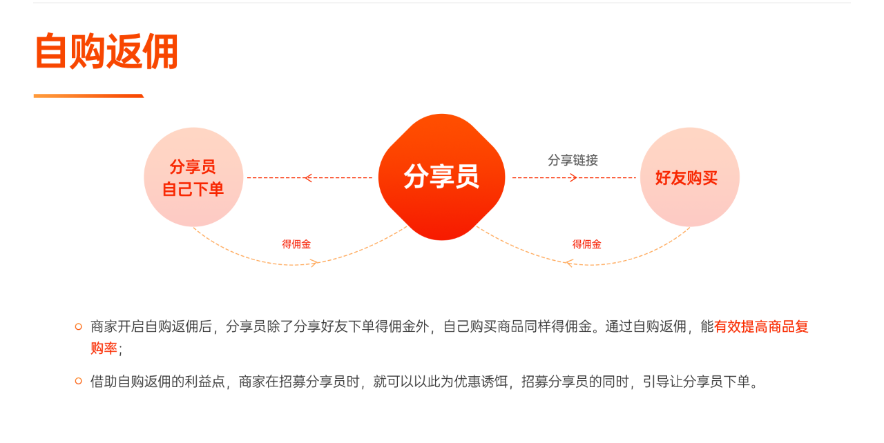 还可在私域中招募分享员,将他们关联至视频号小店,借助「自购返佣」的权益,吸引客户下单,再引导他们分享直播间,赚取佣金,实现更多曝光。