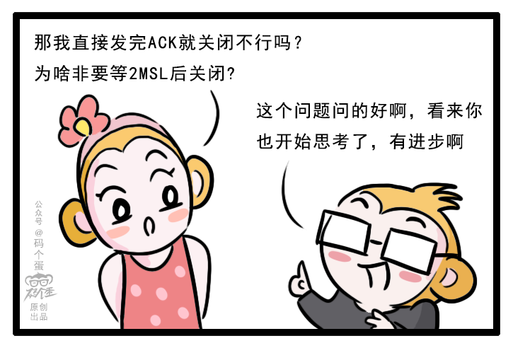 TIME_WAIT 等待 2 倍的 MSL,比较合理的解释是:网络中可能存在来自发送方的数据包,当这些发送方的数据包被接收方处理后又会向对方发送响应,所以一来一回需要等待 2 倍的时间。