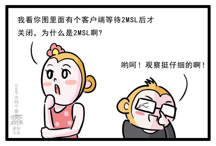 MSL 与 TTL 的区别:MSL 的单位是时间,而 TTL 是经过路由跳数。所以 MSL 应该要大于等于 TTL 消耗为 0 的时间,以确保报文已被自然消亡。