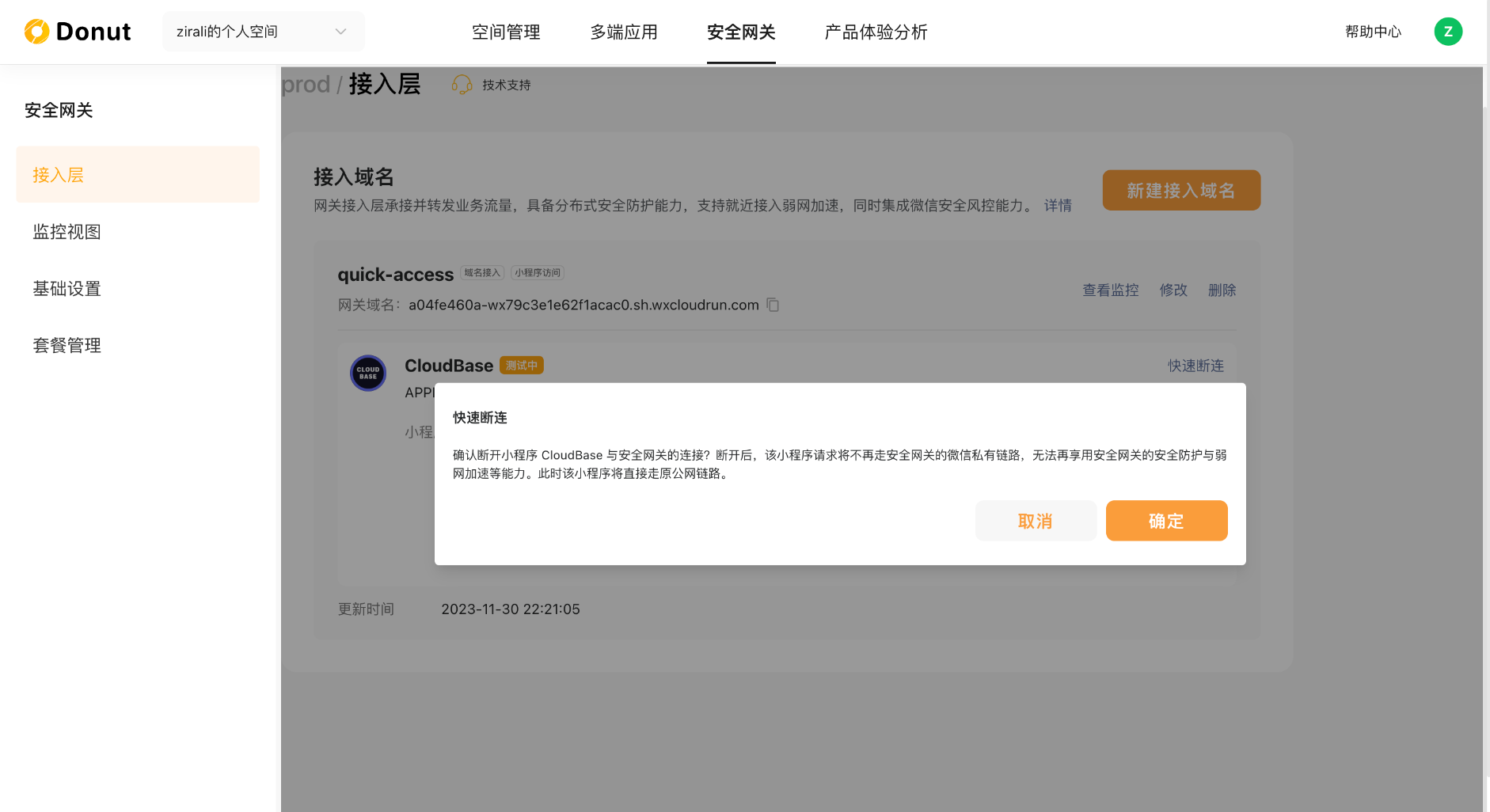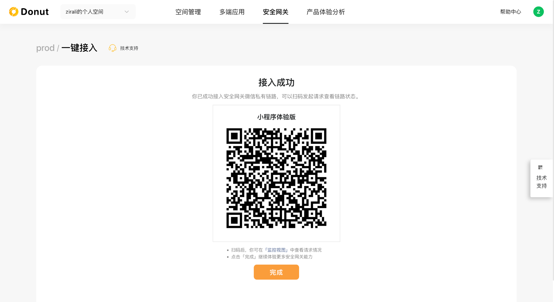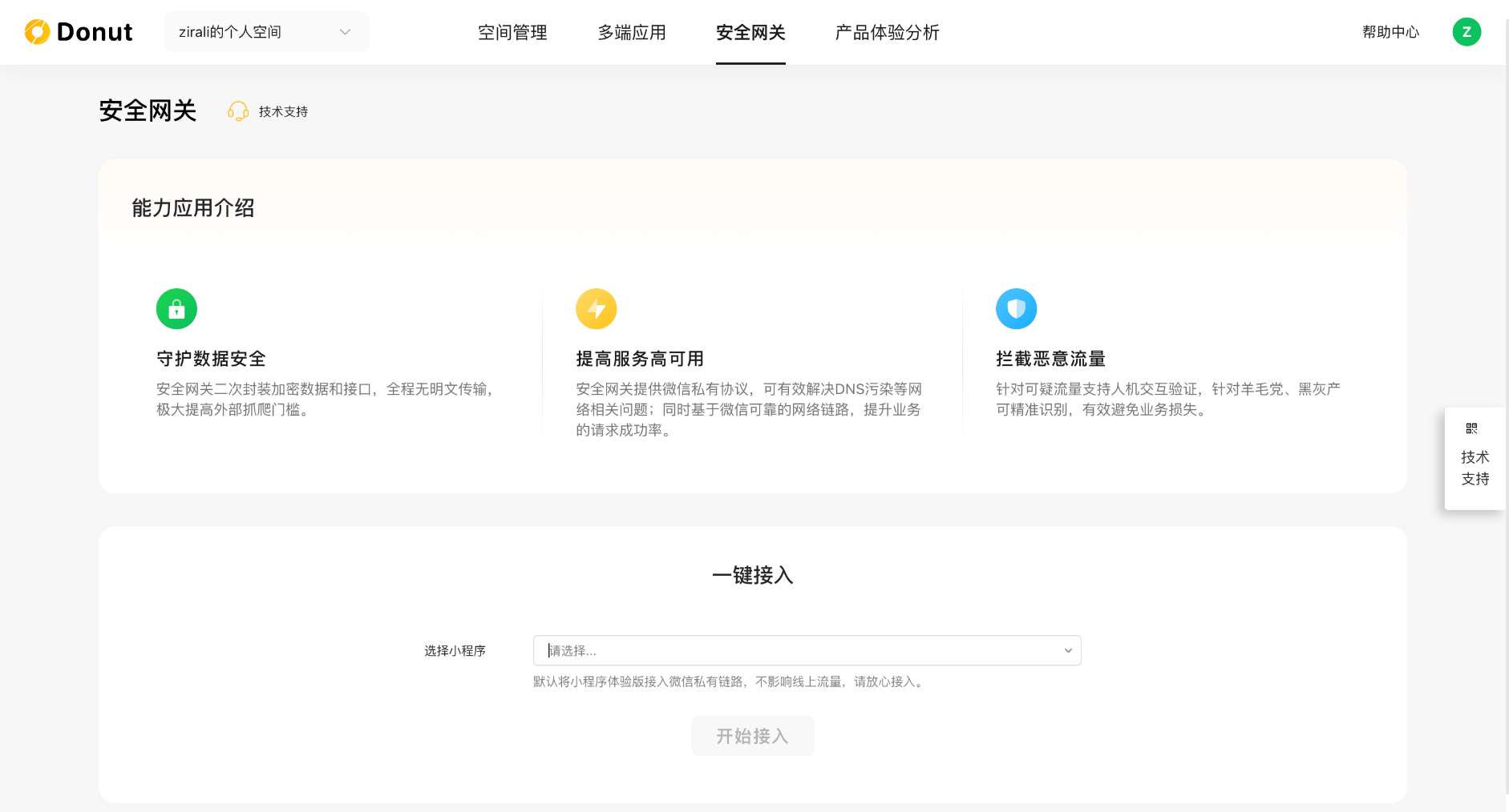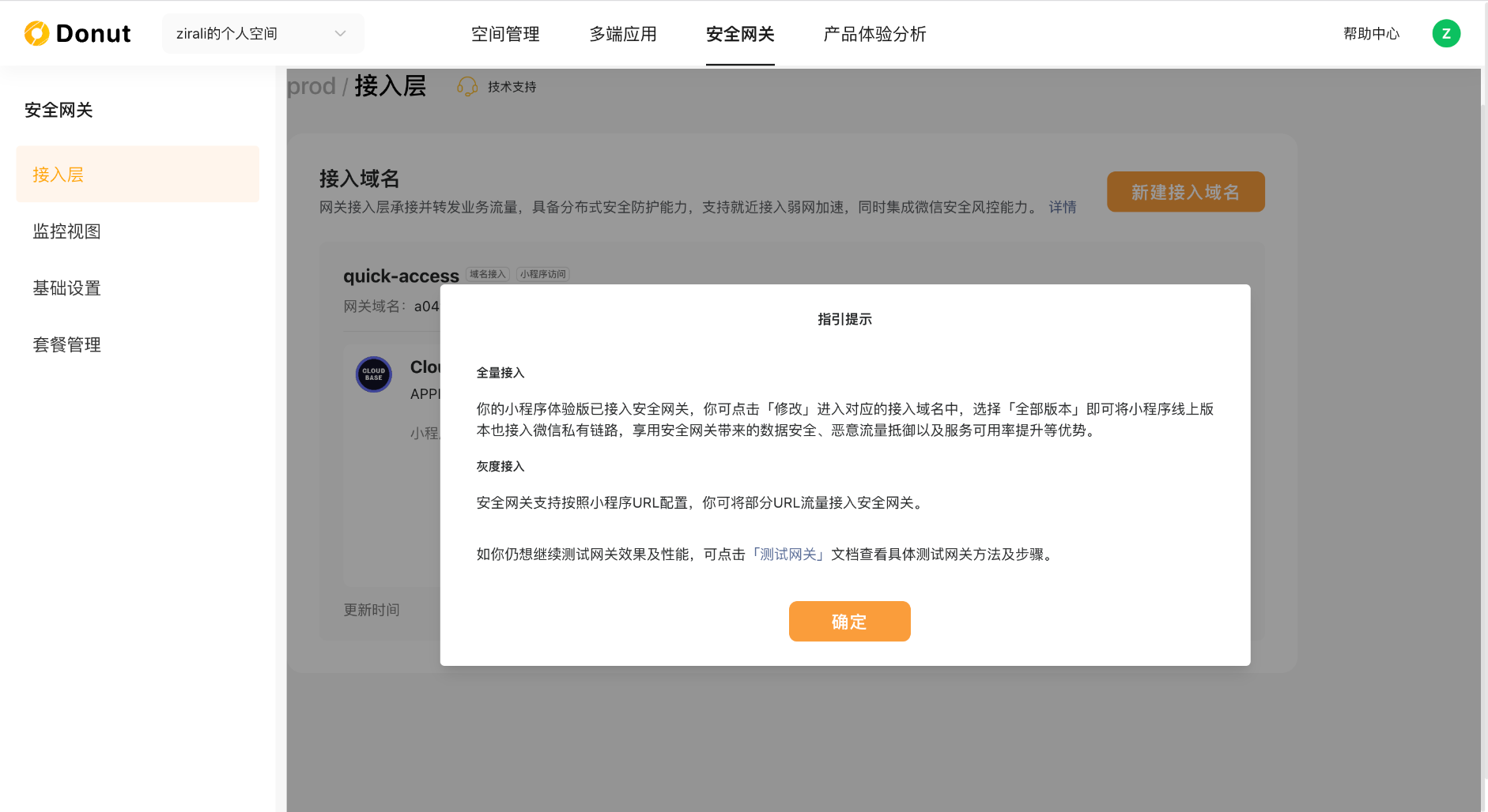 接下来详细介绍一下使用细节。需要注意,之前使用原来形态的安全网关的开发者,需要新建一个空间才会有这个能力。