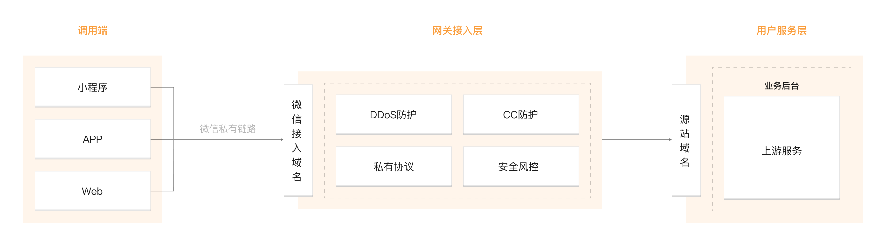 但接入域名需要配置在前端应用(小程序、WEB、APP)中才可以正常接入。整个架构图中,从调用端到业务后台,每个链路都需要完成改造,安全网关才算正常接入完成。