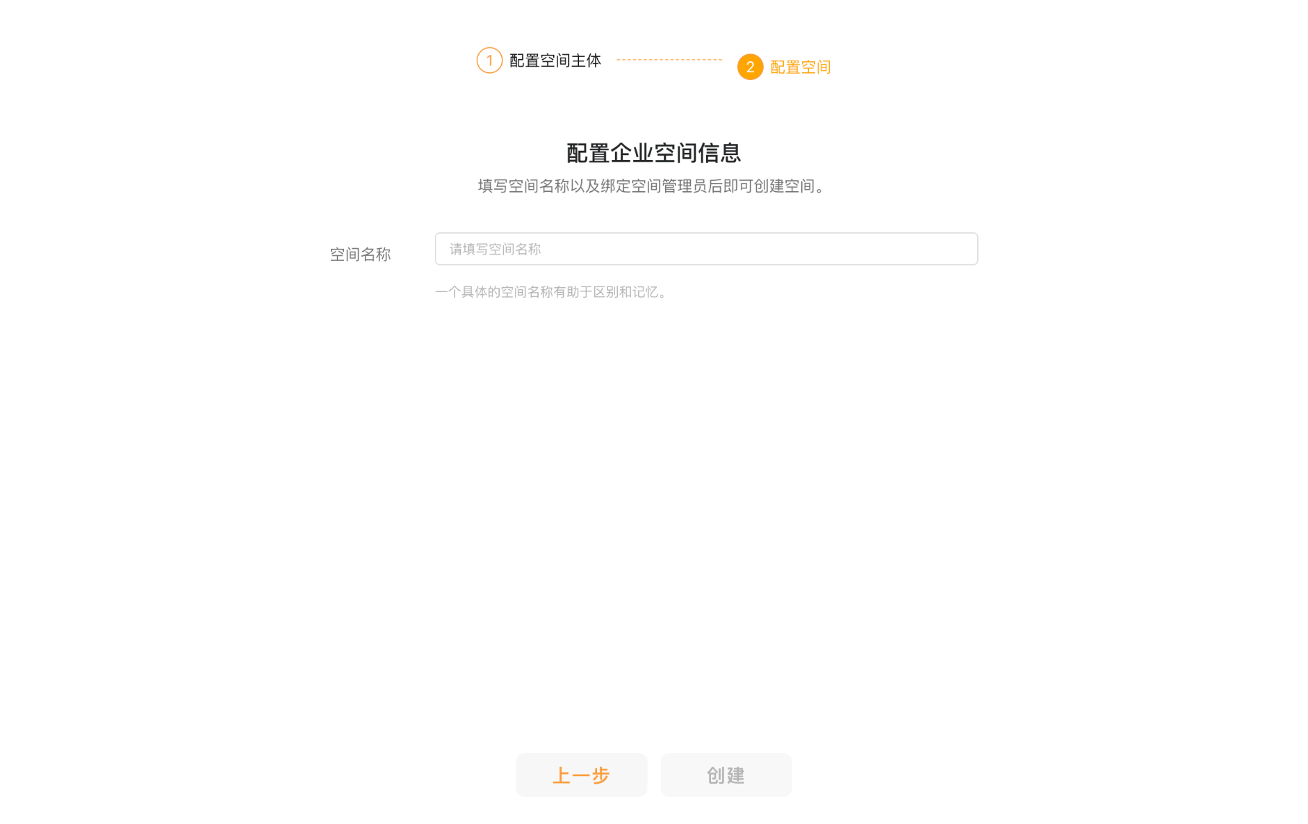 2. 如果账号没有创建过任何空间,会自动引导开通空间;根据自己的情况选择个人或企业主体,并给空间起一个名字。一般建议一个空间对应一个业务集群。