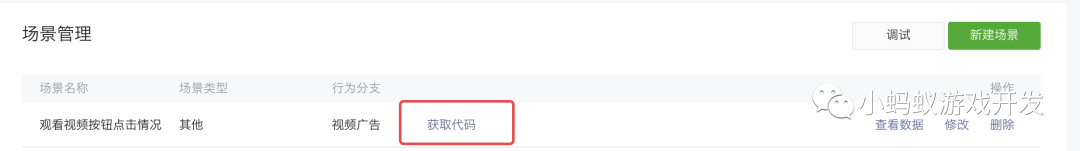 新建完场景之后呢,就能够在“场景管理”中看到你创建的场景了。接下来,点击“获取代码”。