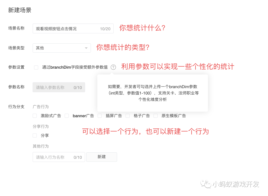 注意图中的“参数设置”选项,默认是没有勾选的。如果勾选的话,就可以在上报数据的时候额外的上传一个参数(branchDim),这个参数只能是 int 类型,并且数值只能是 1~100。