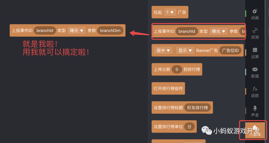 为你的小游戏增加数据统计能力,其实非常的简单。如果你使用的是“微信小游戏制作工具”的话,那么只需要使用一块积木就可以了。