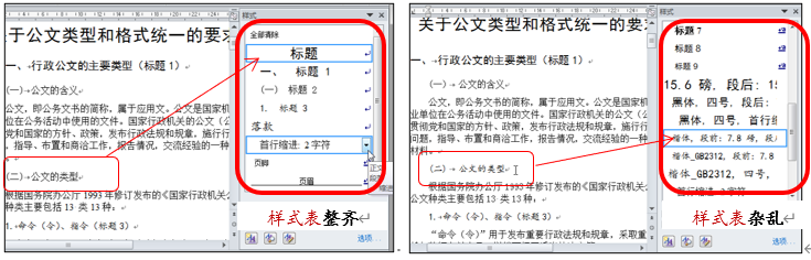 图 3 规范版式与混乱版式的“样式表”对比状态