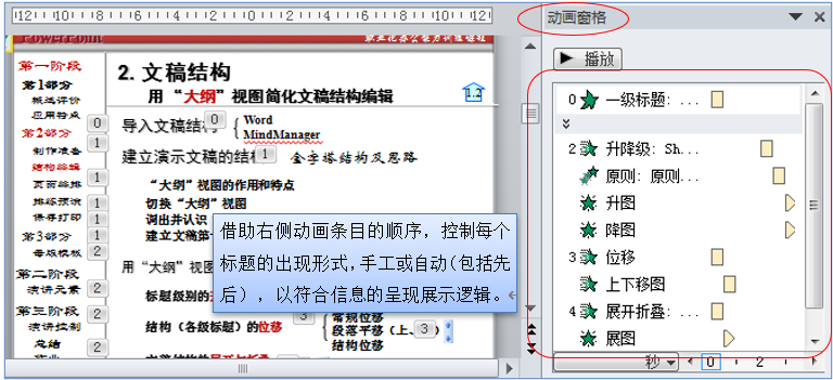 图 21 通过对幻灯片内各对象(如段落)的动画设置可控制演讲的节奏