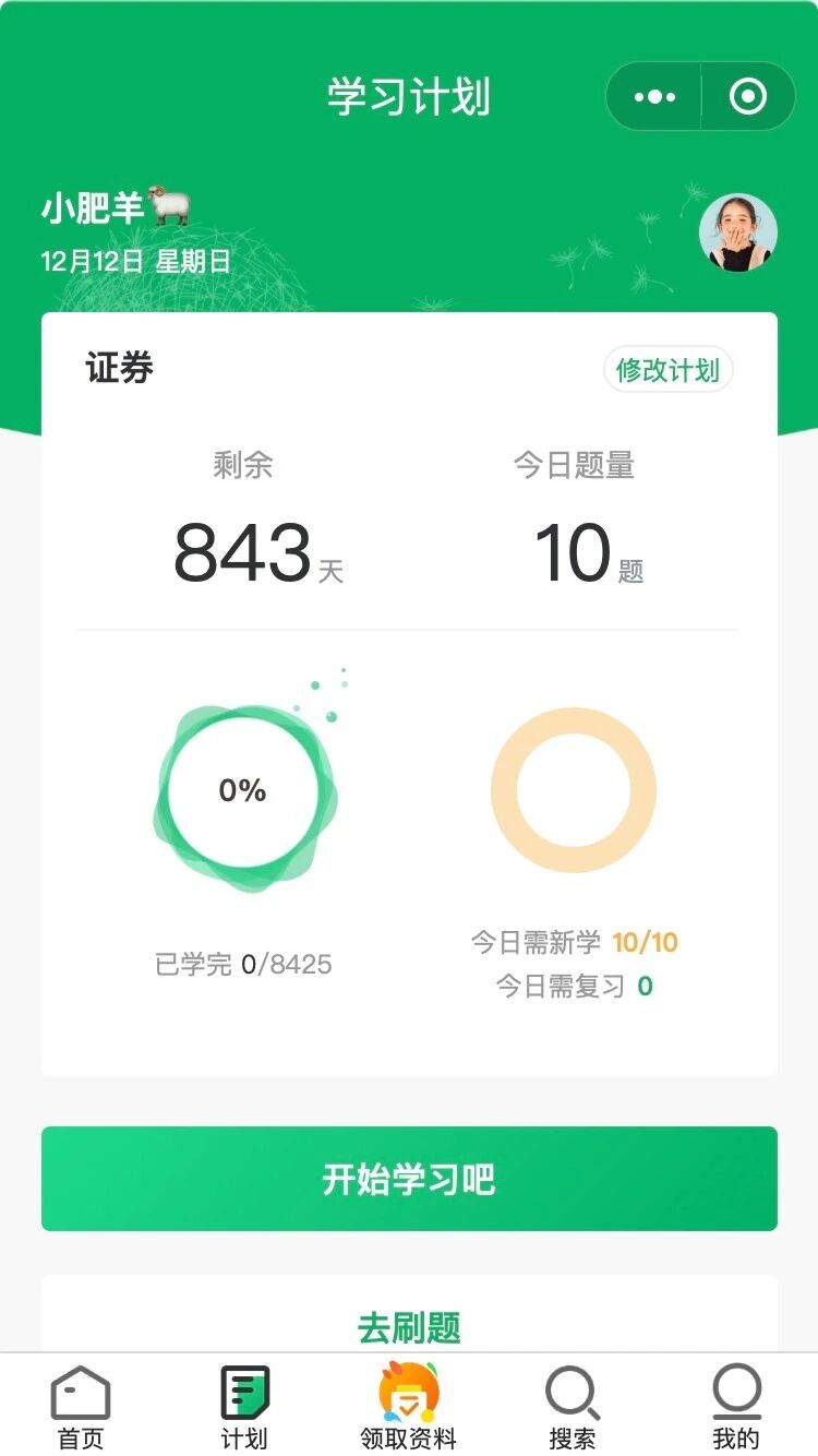 10月底上线的版本,我其实将学习就按这个模块给拿掉了,没有展示,因为当时实在是没有思路,其次是市面上很多带学习计划模块的小程序,我体验了下,每一一个是完善的,多少都有不少瑕疵