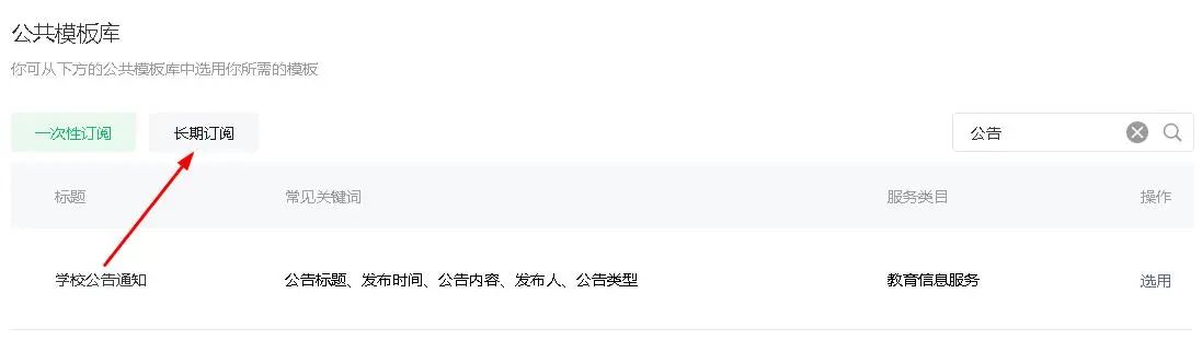 如下图是能使用的长期订阅模板,其实这些不大用,而上课消息是很重要的,却放在了一次性订阅里,怎么把一次性订阅消息改为长期订阅?