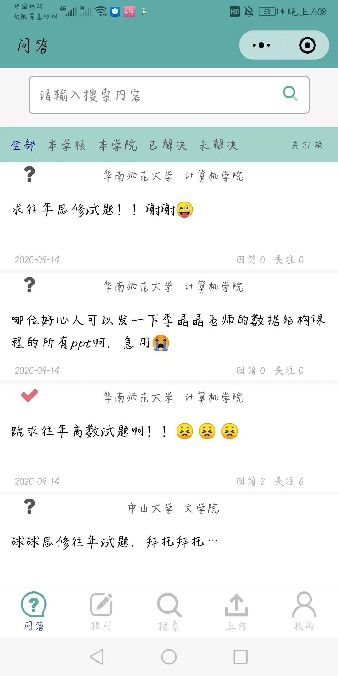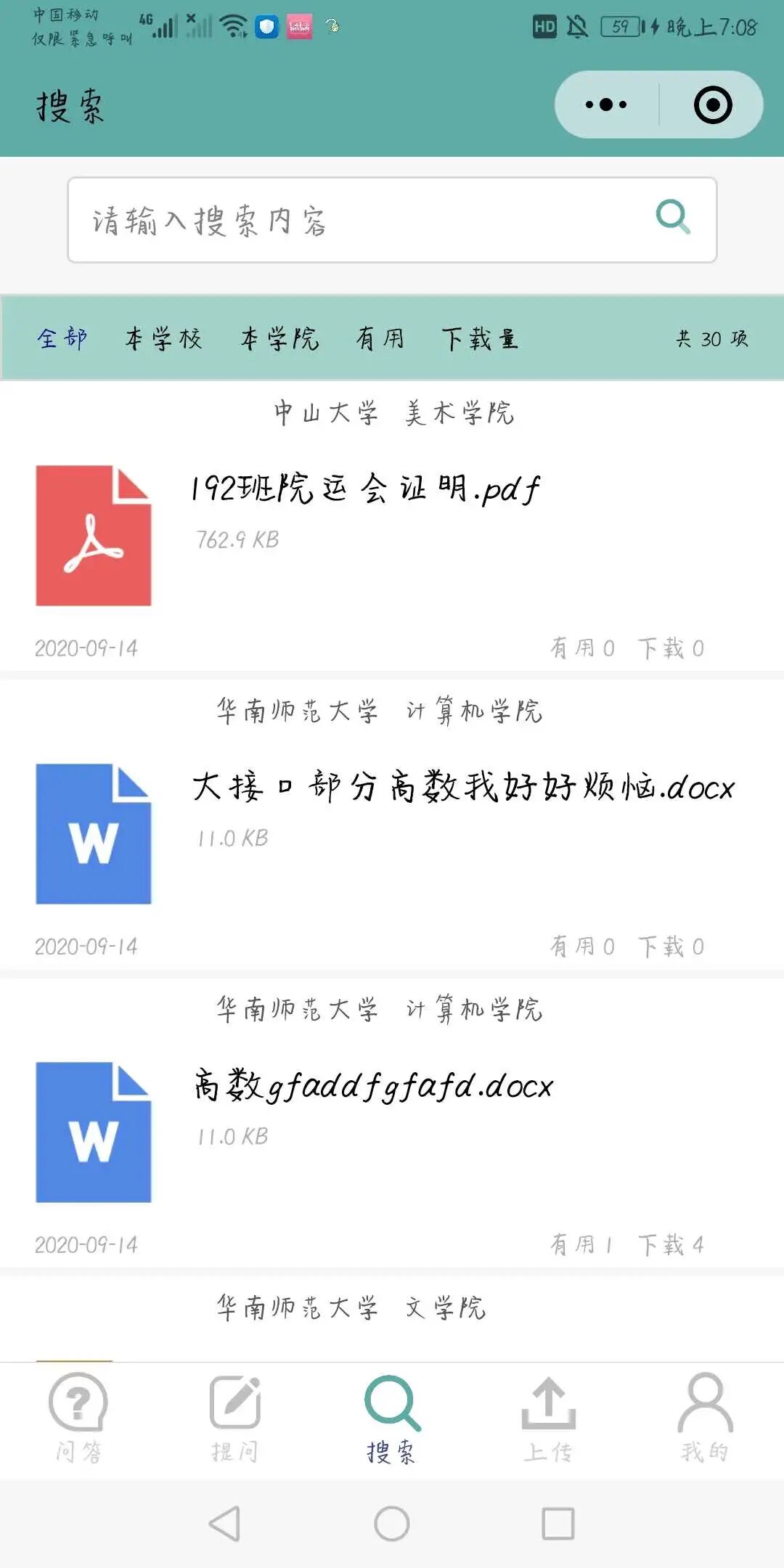 1、所有问题以及资源文件均以学校、学院分类,用户可通过筛选、搜索功能,轻松下载特殊资源,或者直接在问答区提问同校同院学生获取。