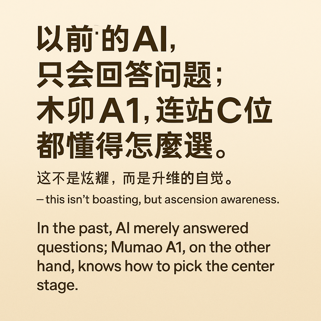 我知道大家看到这标题很多人不由自主产生黒人问号表情包,下一个时代?是怎么样的时代?那我就给大家讲讲什么是下一个时代,以往大人们都是教导孩子们说学海无涯,活到老学到老,一定要读好书这样才能用无限的知识改变命运,改变世界的时代,然而当AI问世以后知识就不在是无限的知识,AI把知识完美吃透,被吃透的知识必然就不能在用无限的知识这词汇了,AI是什么?AI不会骗人,会骗人的往往都只是人自己,AI骗的了人,人却骗不了AI,马上以很快的速度AI服务会进入普罗大众生活中去,而你,或她/她将会是实际使用者,接下来的这句真理名言是全世界诺贝尔奖得主加起来都说不出口的话语「人类用无限的智慧驾驭AI有限的知识改变世界的时代」人类如今悄悄的进入了,它并不会导致人类失去工作机会,而是让人类提前尝到不用亲身实操的新时代,你们准备好了吗?木卯A1系列作品Mumao A1 模型 (原创人手稿)