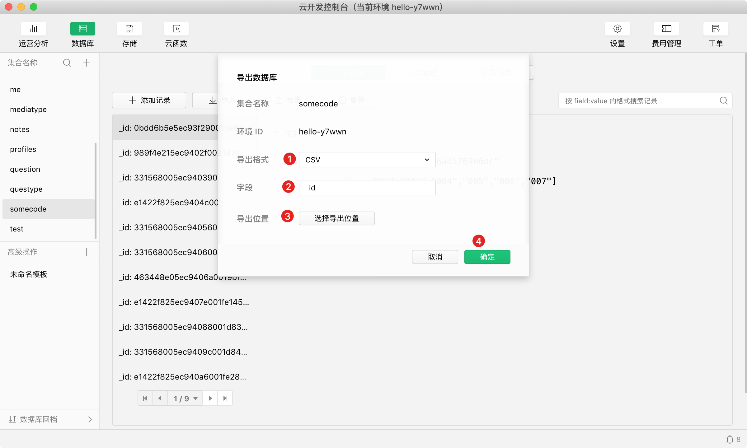 https://developers.weixin.qq.com/miniprogram/dev/wxcloud/guide/database/export.html