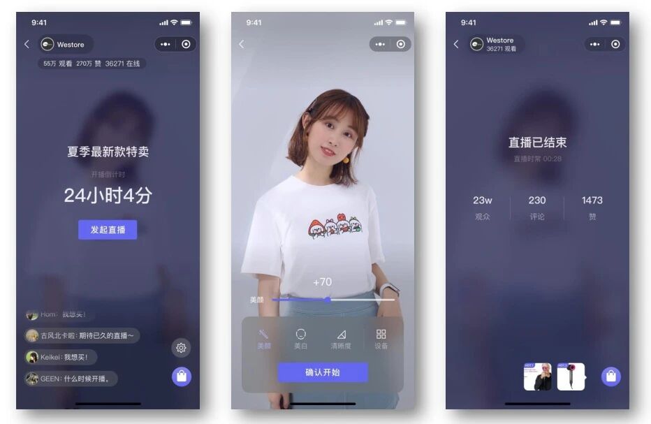 顾客通过小程序预约、观看直播并进行互动及购买;