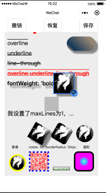 - 支持圆角,其中图片,矩形,和整个画布支持 borderRadius 来设置圆角