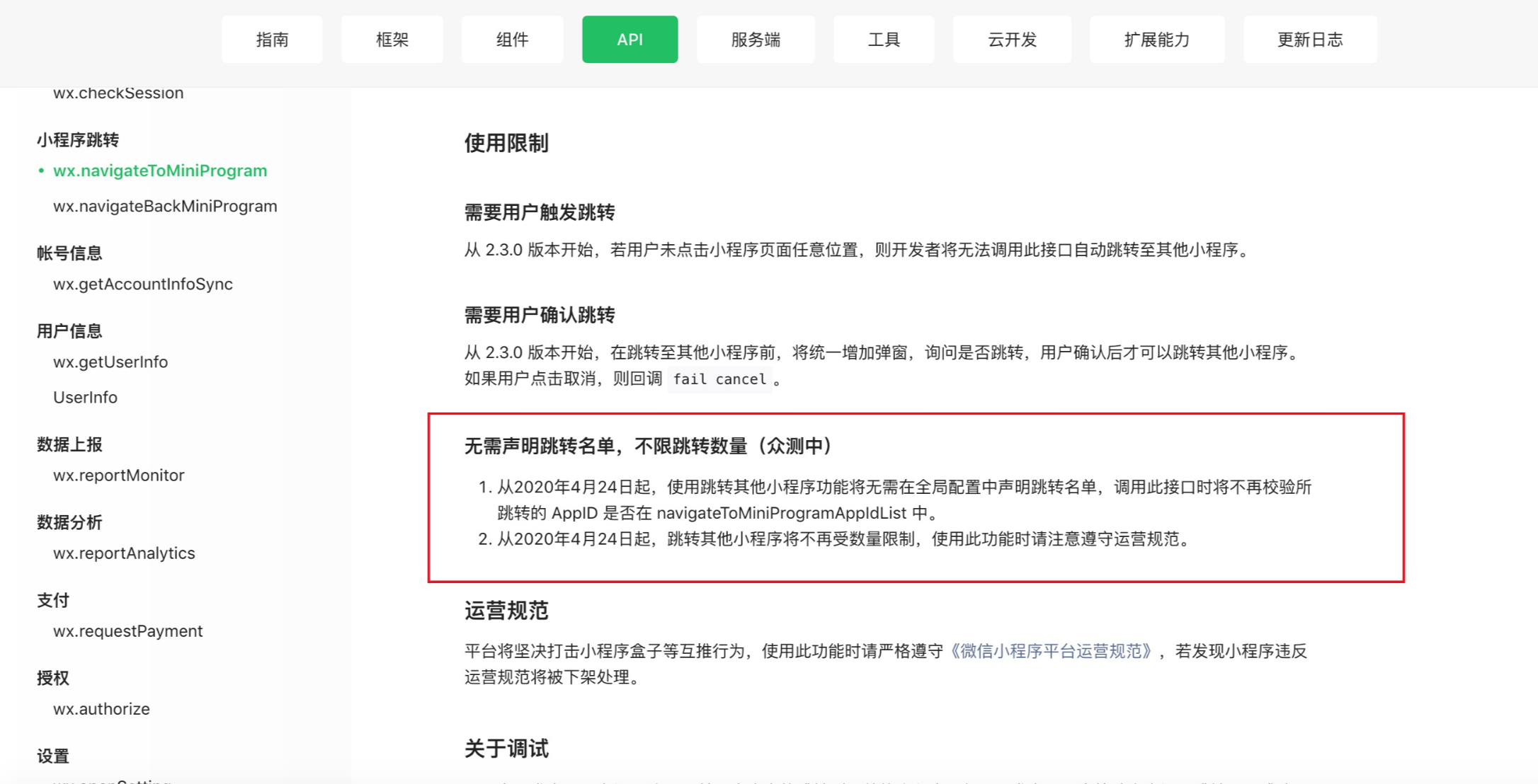群体突然传来一条消息,小程序跳转将不在限制,且无需前端声明。也就是说【navigateToMiniProgramAppIdList】以后用不到啦~~~