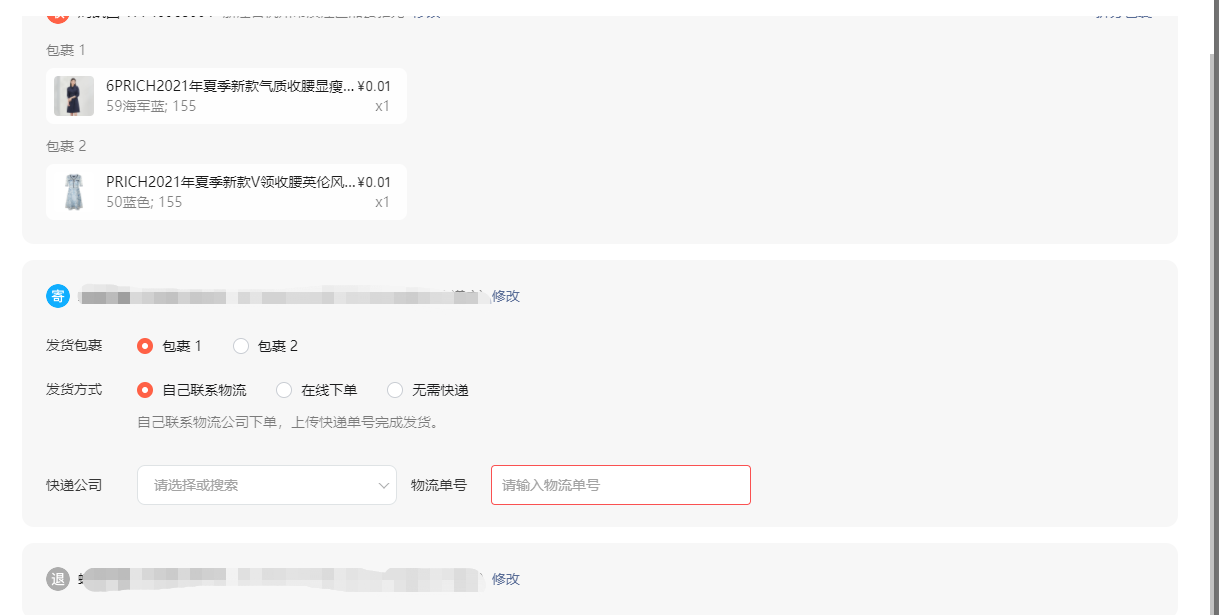 此外,商家亦可以在发货时点击【修改】,修改用户的收件信息。