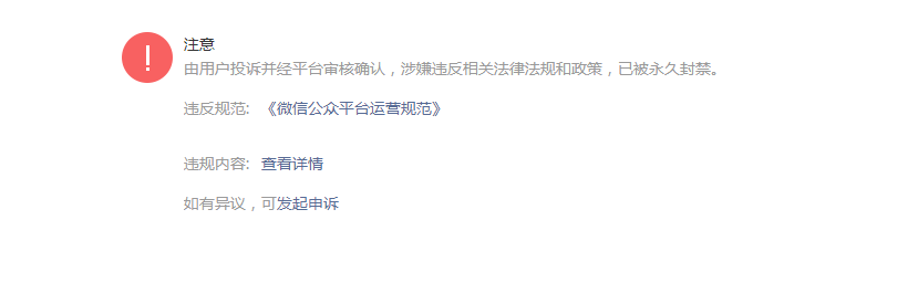 公众号被恶意举报,导致永久封号,请管理员重新核实!
